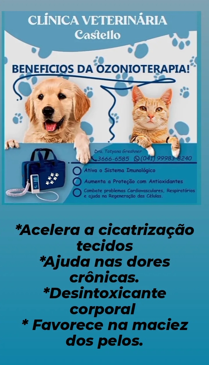 A ozonioterapia é uma técnica terapêutica que utiliza o ozônio (O3) para tratar diversas condições de saúde em cães e outros animais. O ozônio é uma forma altamente reativa de oxigênio e, quando aplicado de maneira controlada, pode oferecer vários benefícios terapêuticos.